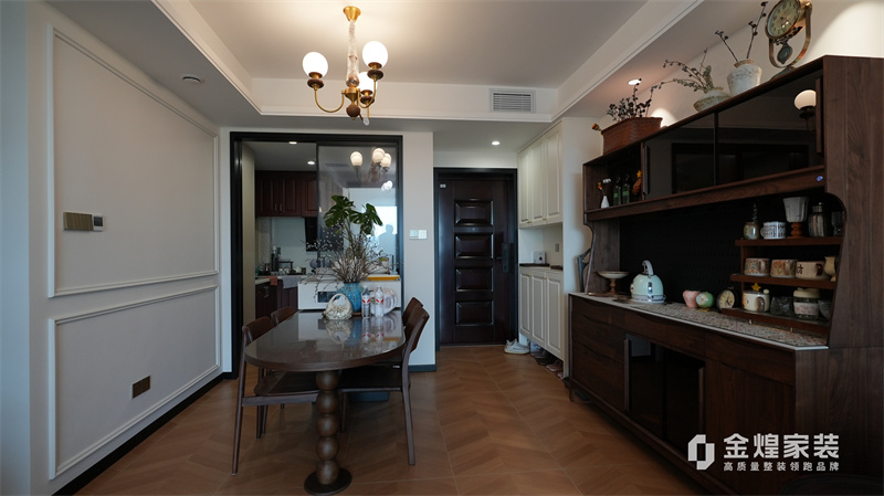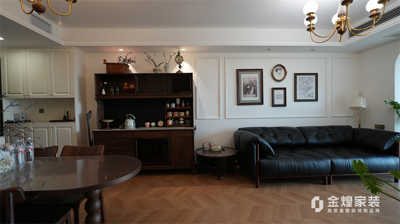 從客廳的深色皮質(zhì)沙發(fā)、木質(zhì)電視柜,到餐廳的玻璃餐桌、深色餐邊柜,再到臥室的白色衣柜、深色木質(zhì)床,都體現(xiàn)了中古風(fēng)格對材質(zhì)和色彩的選擇偏好。