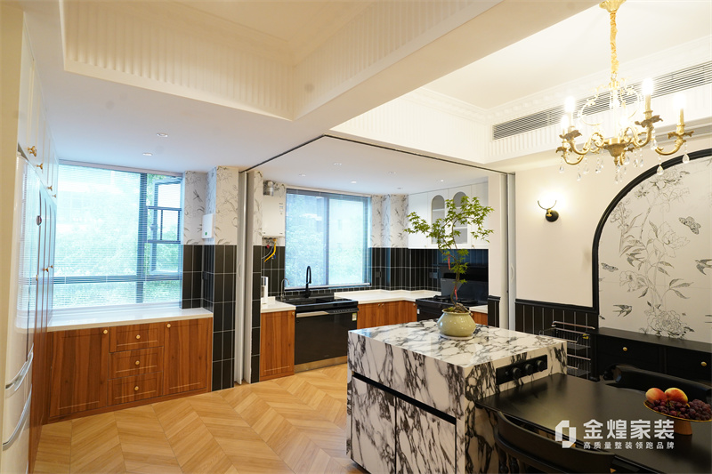 從客廳的裝飾細(xì)節(jié)可以看出,如帶有精致雕花的天花板、華麗的吊燈、優(yōu)雅的家具線條以及整體柔和的色調(diào),都透露出法式風(fēng)格的浪漫與典雅。