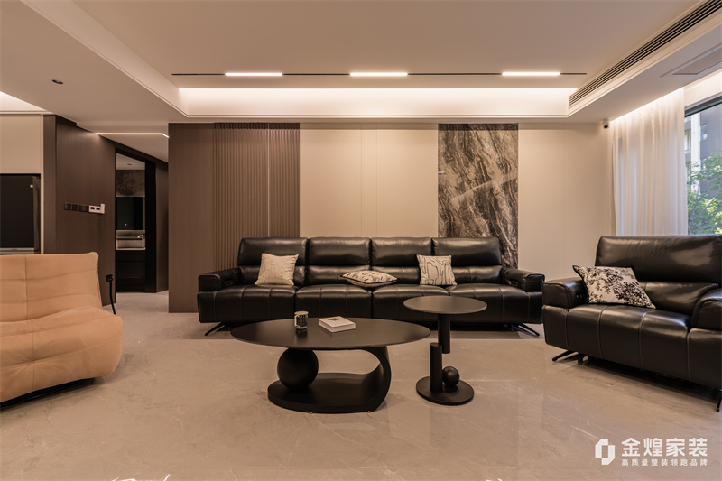 本案整體以意式輕奢為主基調(diào),去客廳化,結(jié)合輕奢主義打造意式簡約空間,整體運(yùn)用了木飾面、硬包以及巖板等不同材質(zhì)的碰撞,空間沉穩(wěn)大氣,質(zhì)感十足。