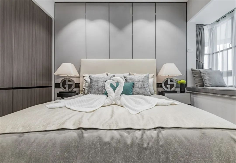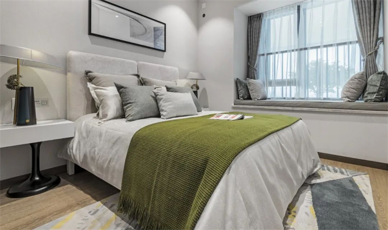 次臥設(shè)計(jì)同樣精致考究,精選舒適柔軟的床品和簡約裝飾畫,營造出輕松愜意的睡眠空間。柔和的色調(diào),讓人感到寧靜和舒緩,為身心帶來最佳的休息體驗(yàn)。