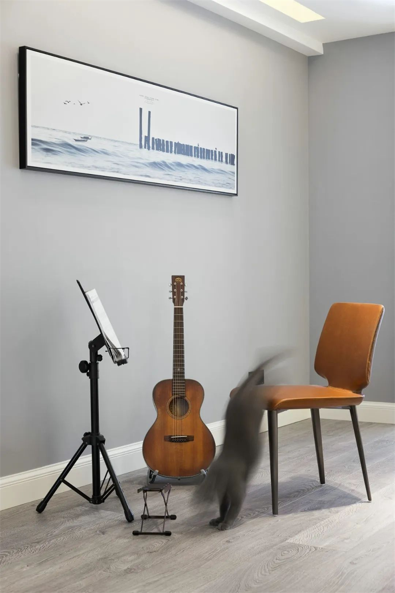 現(xiàn)代簡(jiǎn)約的書(shū)房注重實(shí)用性和整體協(xié)調(diào)性。純白書(shū)桌和書(shū)架組合,打造出一個(gè)明快而整潔的學(xué)習(xí)空間。舒適的椅子、明亮的臺(tái)燈以及一些簡(jiǎn)約的掛畫(huà)與樂(lè)器裝飾,讓這個(gè)空間兼具工作與休閑的功能。